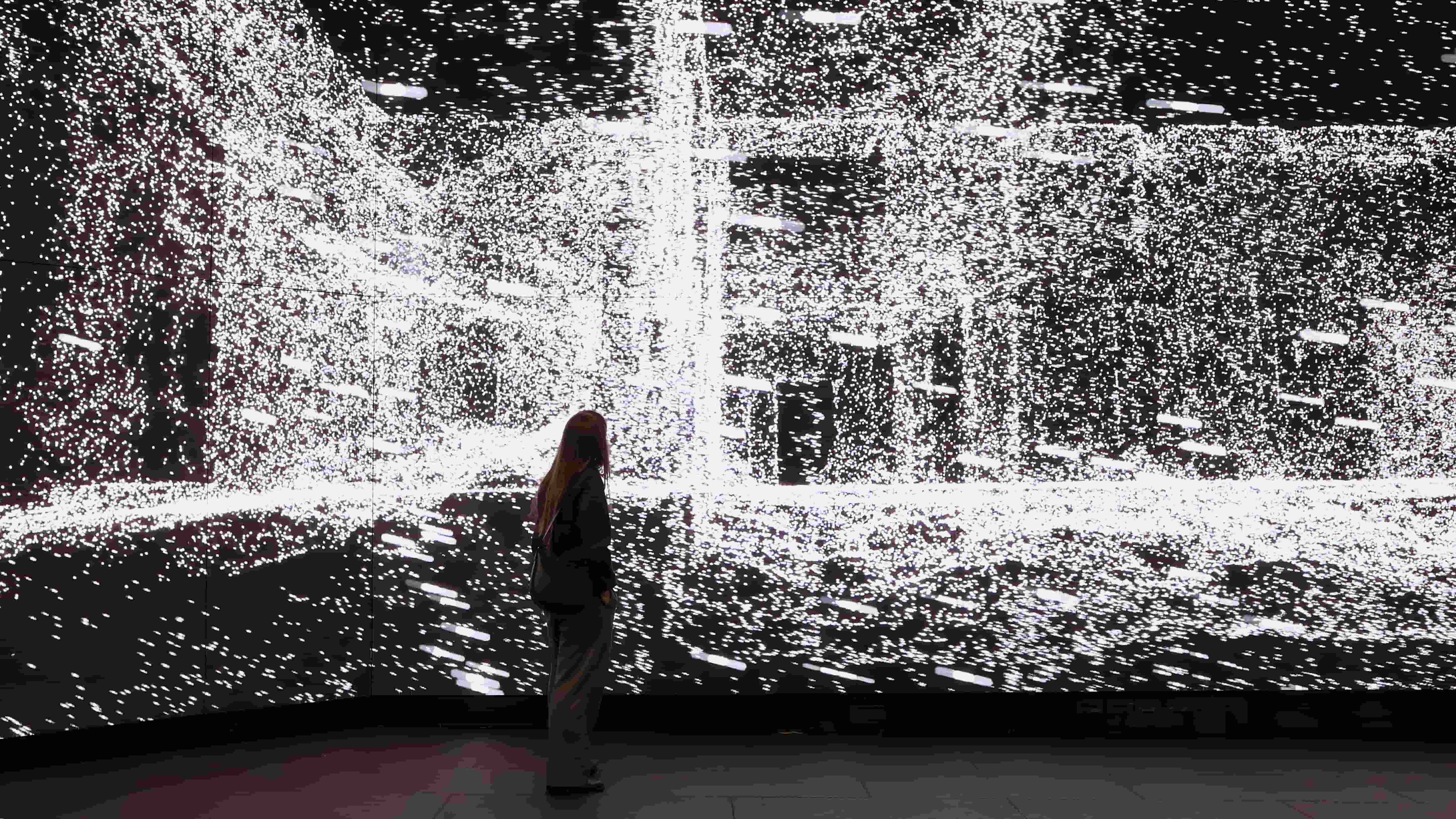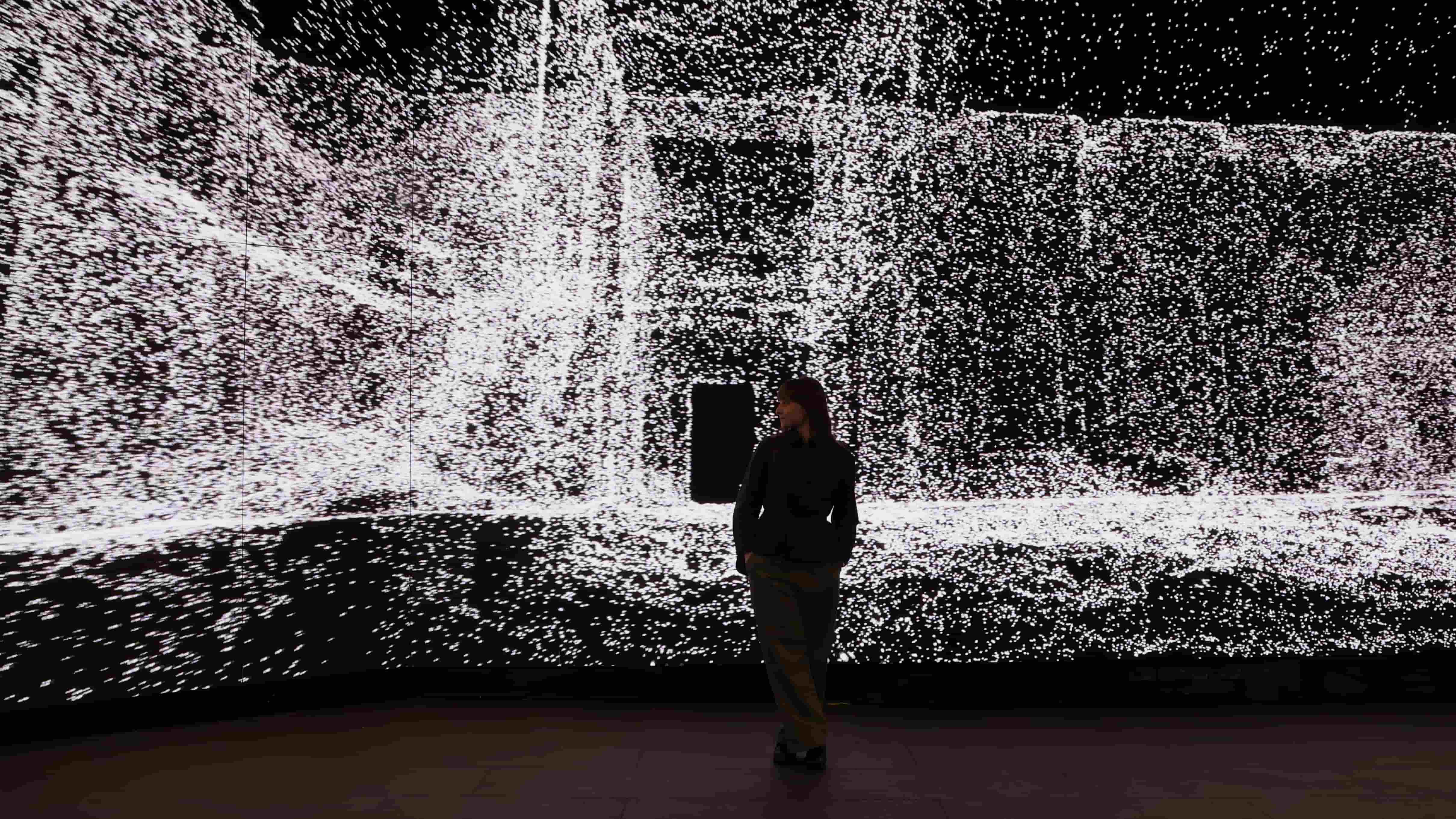 A Woman's War is an immersive digital exhibition conceived and directed for Outernet London, one of the world's highest-traffic public screen environments, reaching over 10 million visitors annually. The work translates a live performance into a large-scale digital installation, using 3D photogrammetry scans from Ukraine to generate particle-cloud visuals that fill the venue's continuous screen architecture across four days of uninterrupted screening.