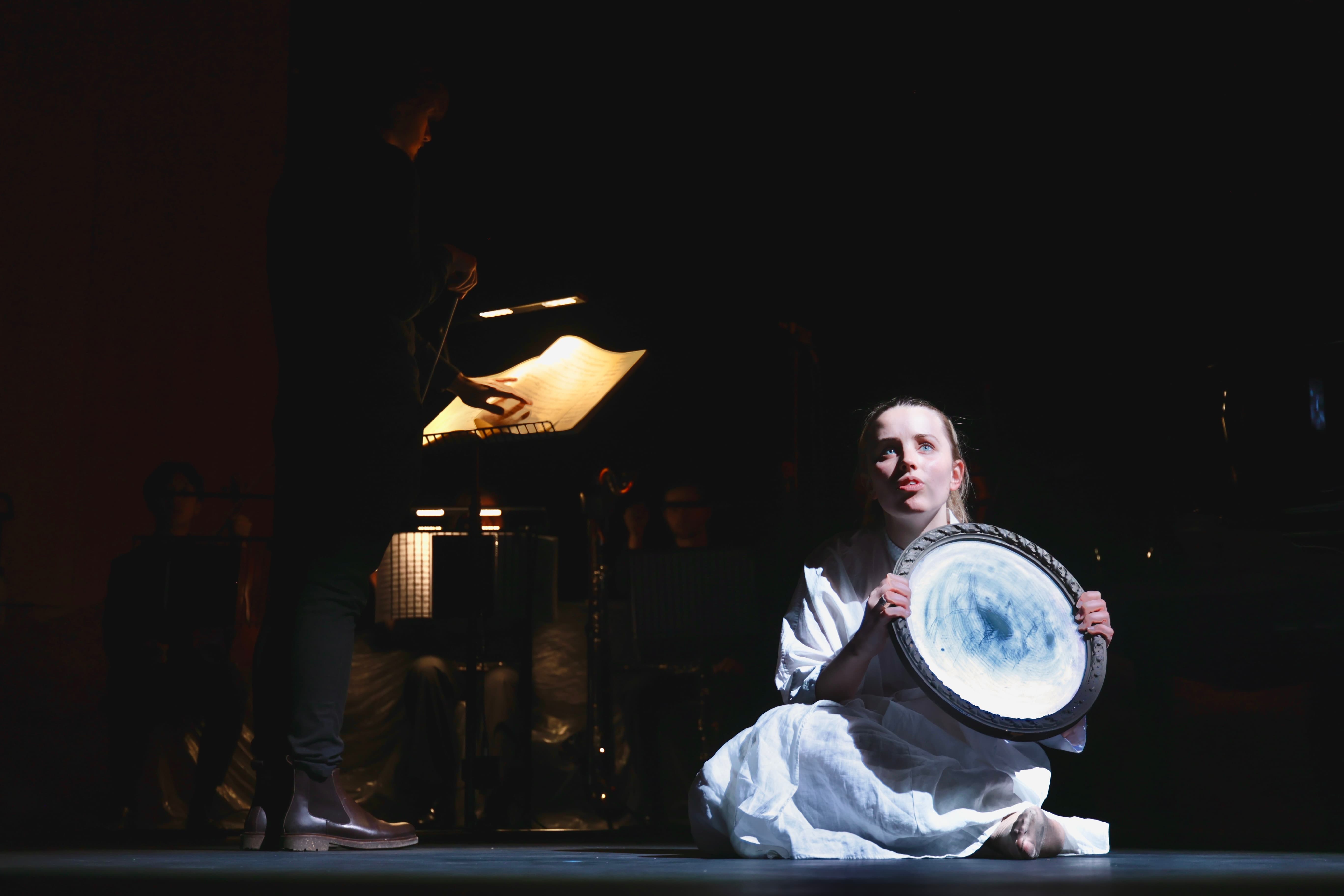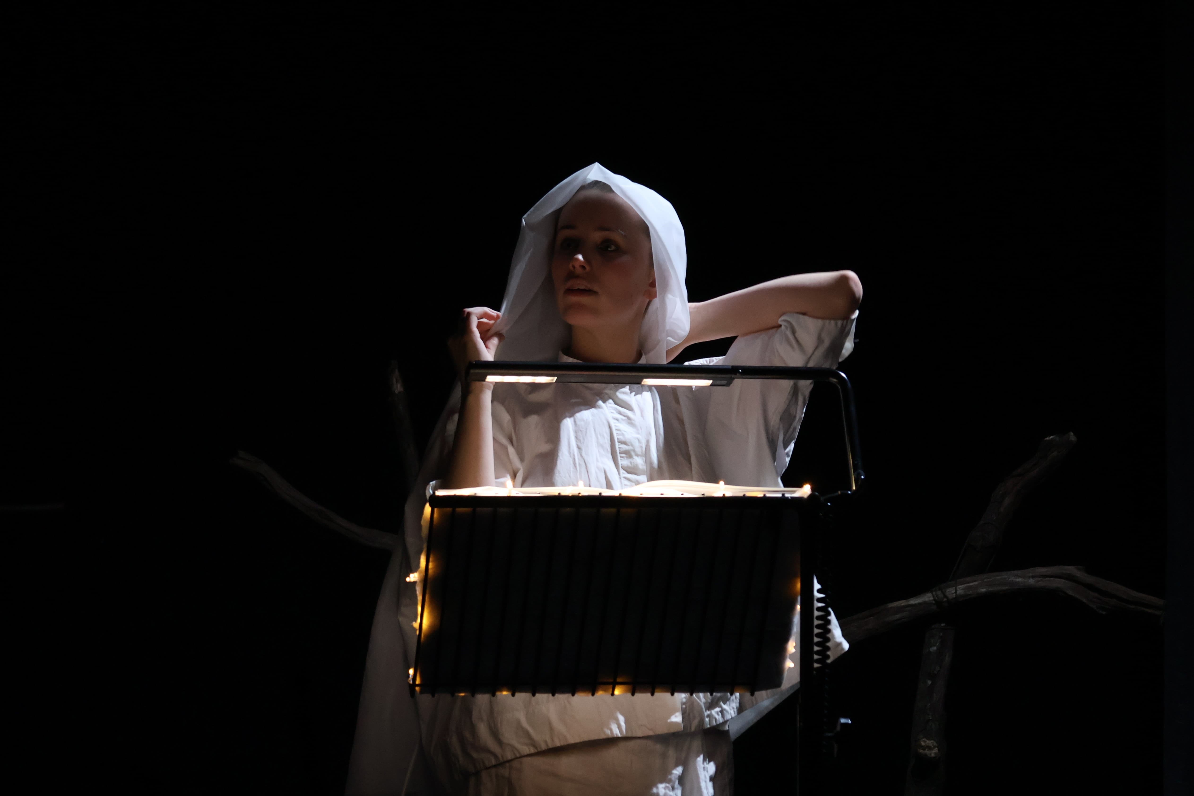 I served as Visual Lead, responsible for the overall visual concept, scenographic direction, and projection design. This meant translating Schönberg's symbolic and psychological world into a coherent visual language — from the initial site visit through to the final performance. While the process was deeply collaborative and rehearsal-driven, all visual decisions ultimately ran through me, including material choices, lighting design, projection content, and the spatial relationship between performer and environment.